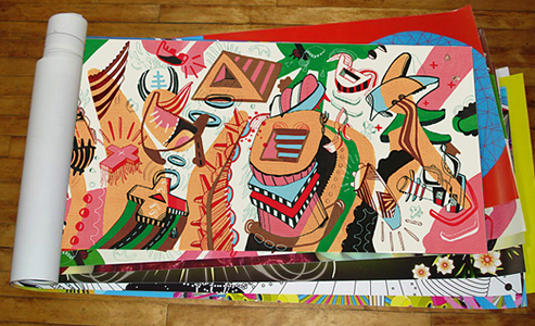 | Painting in the Plaza's headquarters - Porto Alegre - Brazil | Painting in the Cafe de la Music - Porto Alegre - Brazil | Vídeo Miração | ®out 3ª Mostra Internacional d'Art Urbà Publicitari - Barcelona | ROJO Wall Poster Series - Limited edition poster collection of 10 original artworks. | Xirugravura Book | Project Risco SESC São Paulo - 2008 | Cover ROJO Magazine Sieve - 2008 | Book Trindade - 2008 | ROJO Magazine Egal - 2007 | Start / Stop - Zupi Magazine - 2008 |